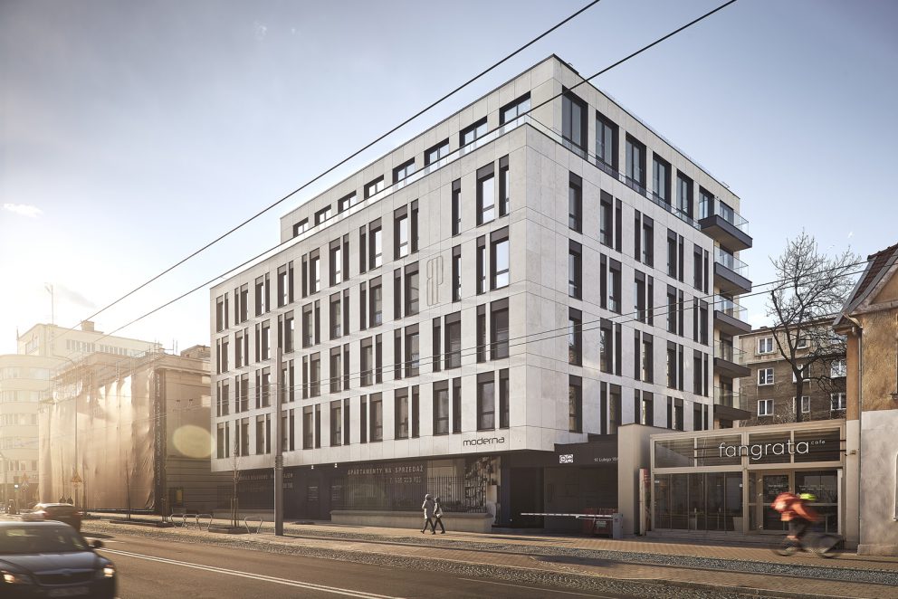 It is elegant and monumental when seen from the outside. Its bright and glazed facade has been carefully embedded within the architecturally perfect surroundings. The modernist apartment building maintains a proud conversation with the main style of the representative street of Gdynia.