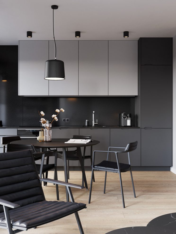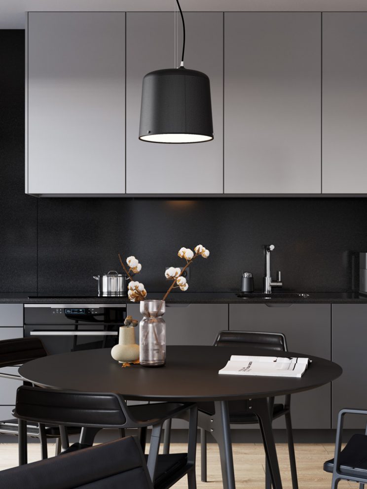• Tabletop and kitchen finish made out of graphite agglomerated stone,