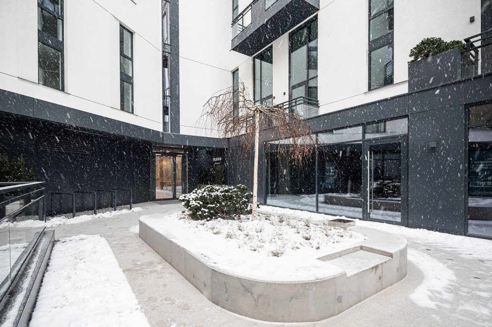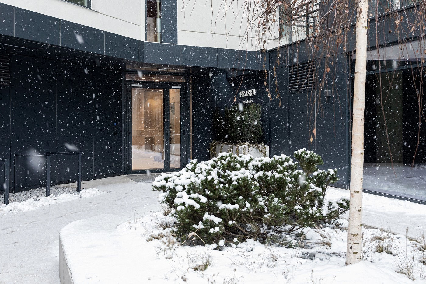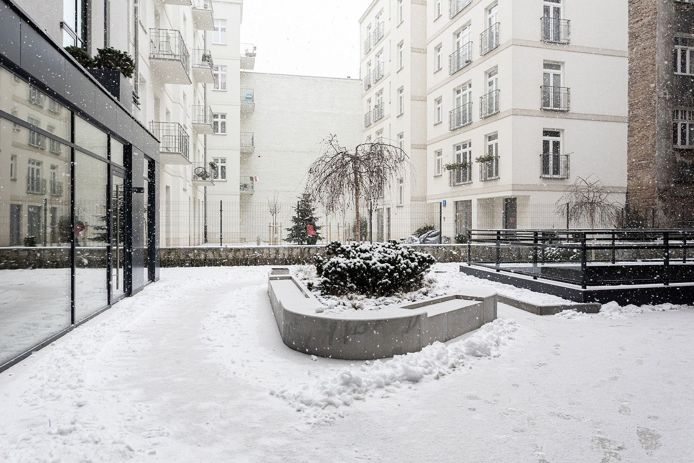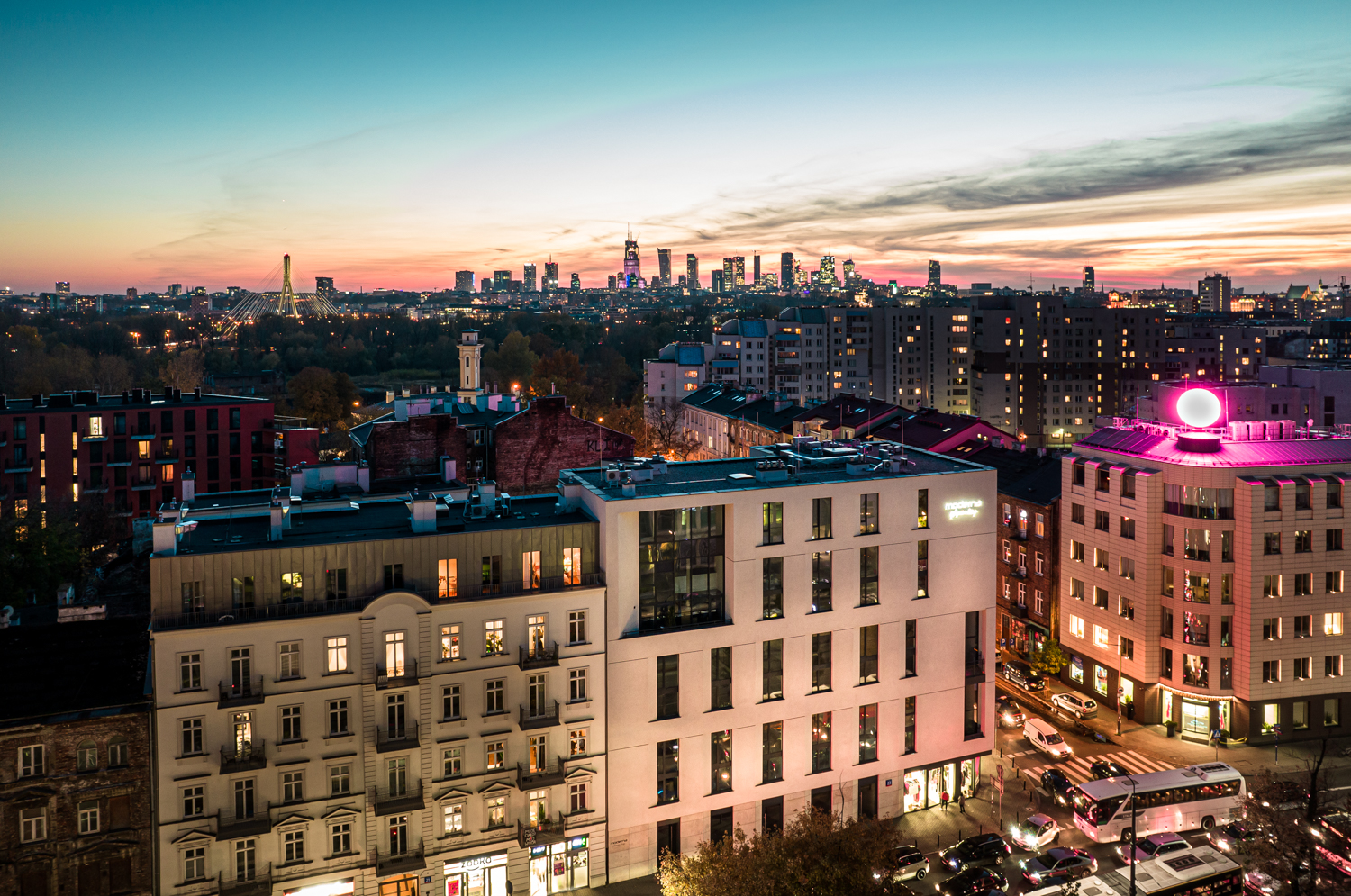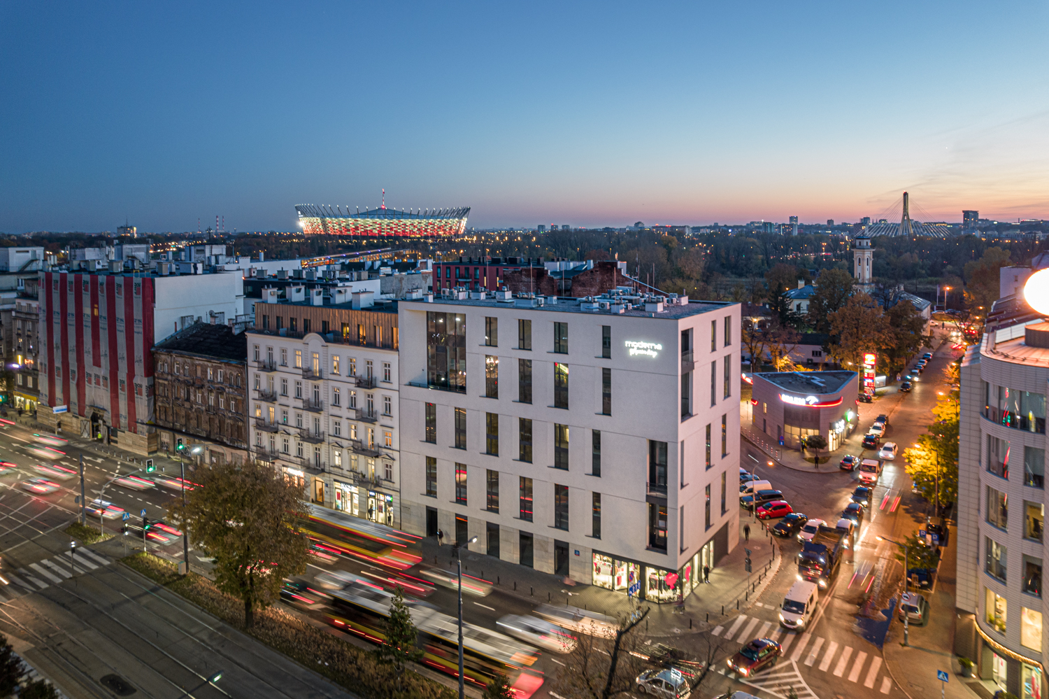 W tym otoczeniu wyrasta odważna sylwetka Praskiej Moderny. I choć jej powściągliwa, jasna fasada z szacunkiem wkomponowuje się w miejski rytm zachodniej pierzei, to otwarta, modernistyczna bryła przyciąga uwagę, nie pozwalając przejść obojętnie.