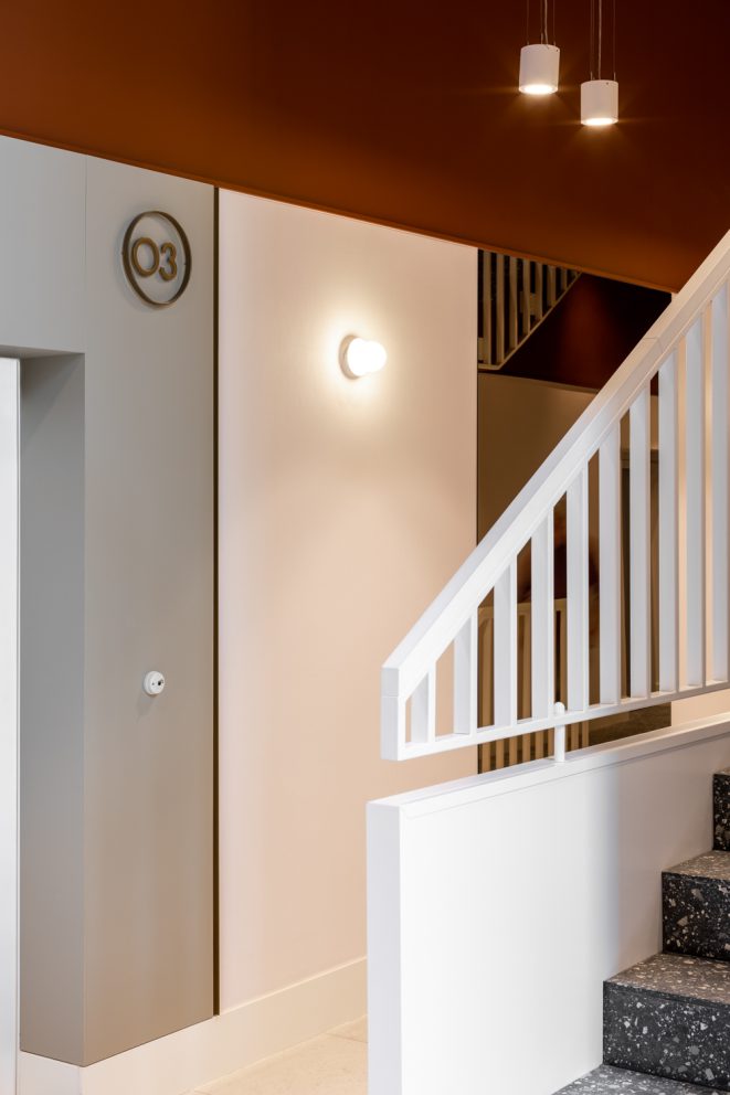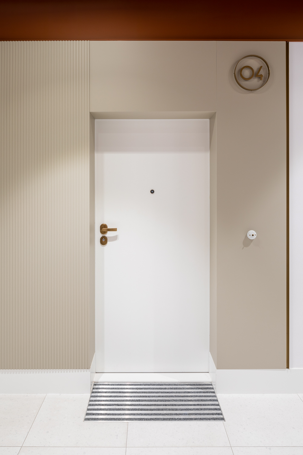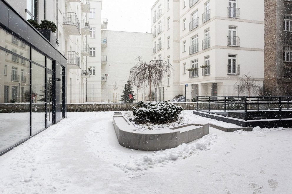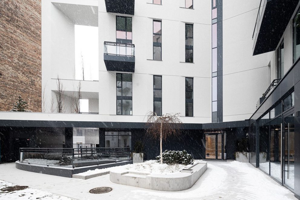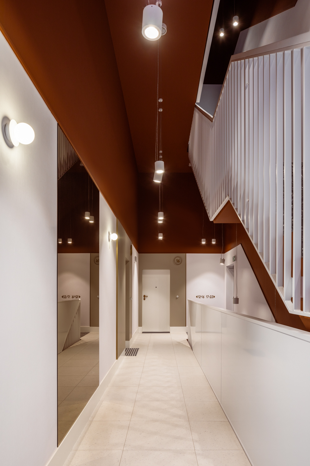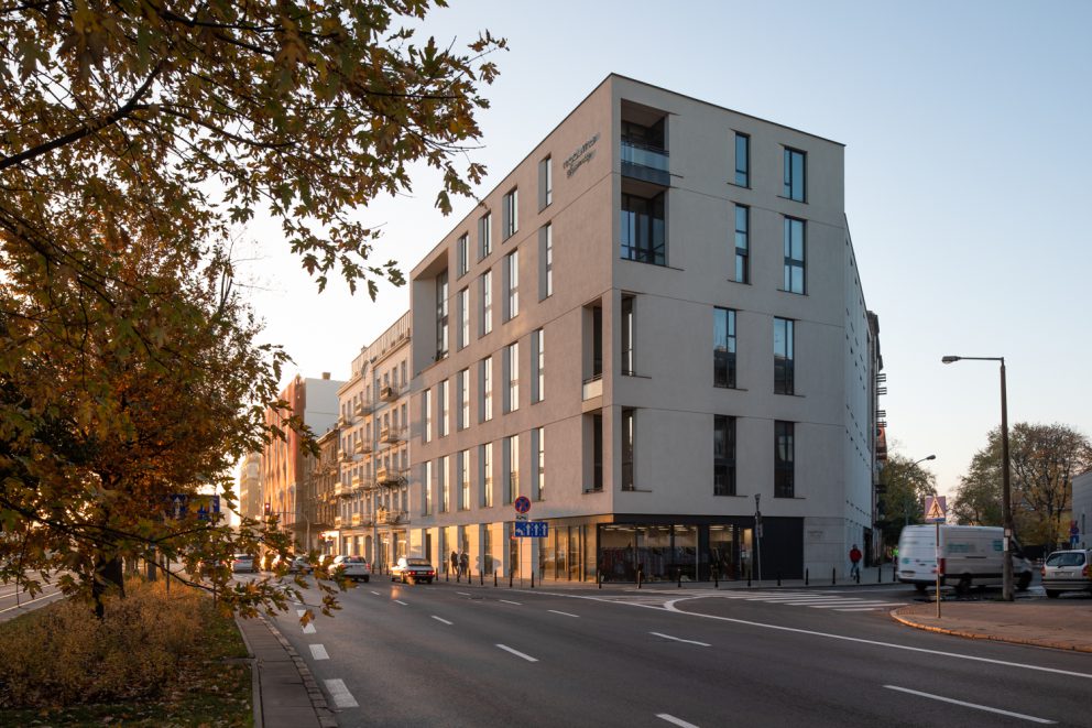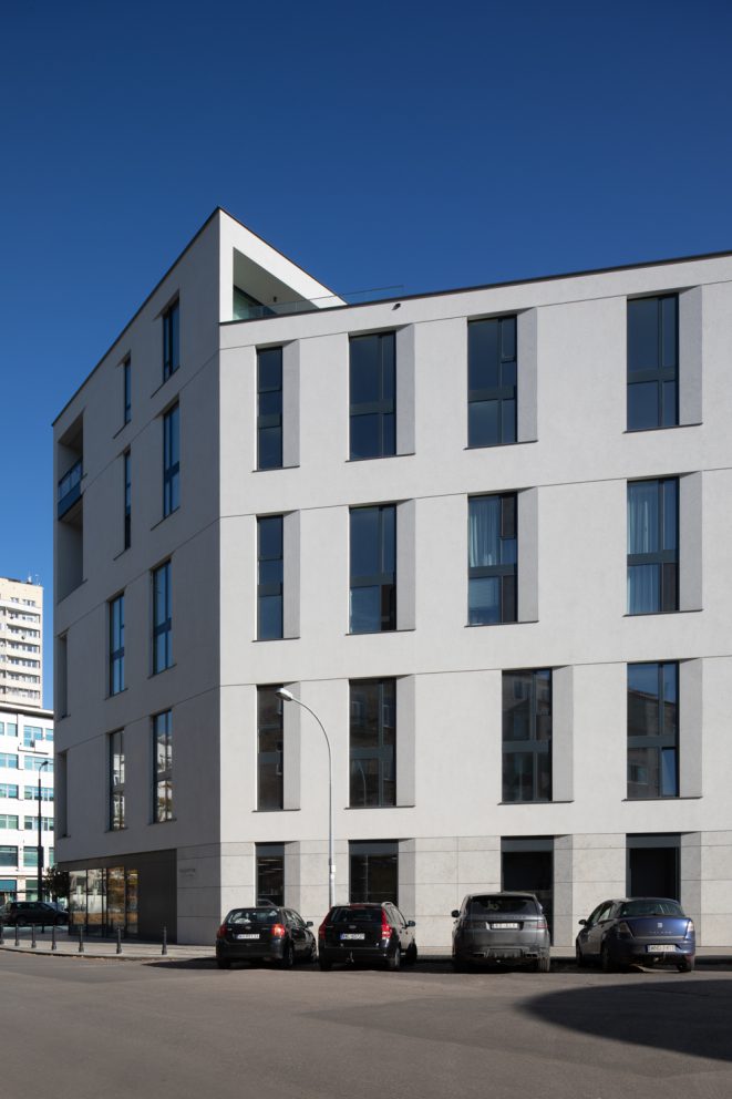 Neomodernistyczna biała kamienica a w niej funkcjonalne wysokie apartamenty: 32 dwupoziomowe typu loft i 3 jednopoziomowe.