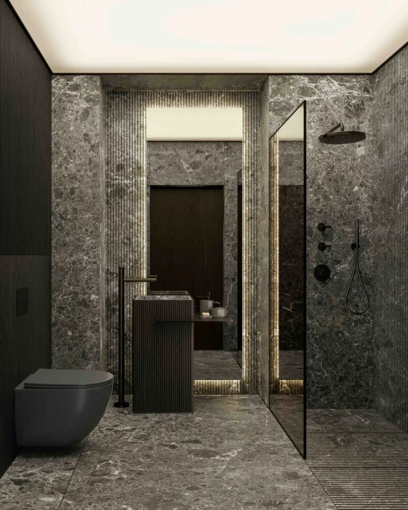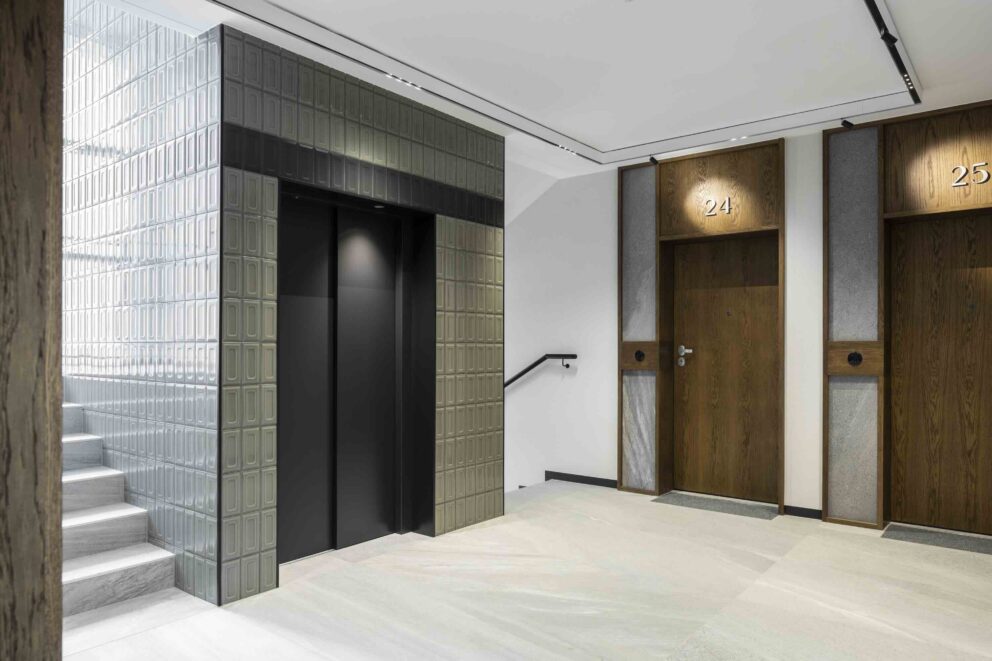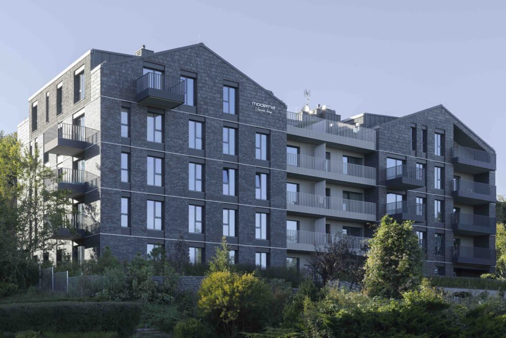 Budynek przyciąga wzrok. Ciemna elewacja, twarde linie, gra kontrastem i podziałami. Części wspólne zostały wykończone w szlachetnych materiałach – kamień i drewno dębowe – co widać już na etapie wejścia do budynku. To projekt, który za kilkanaście lat będzie wyglądał równie dobrze jak dziś. W inwestycji zostały ostatnie apartamenty. Ostatnie, nie znaczy, że najgorsze, bo tutaj nie ma takiego żonglowania jakością.
