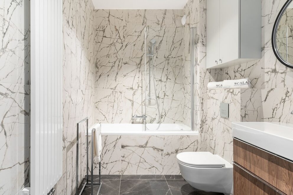 Kluczowym atutem Scali jest pełna gotowość apartamentów do użytkowania. Wszystkie lokale zostały wykończone pod klucz w podwyższonym standardzie Moderny (Model M) – w apartamencie są wygładzone i pomalowane ściany, ułożone podłogi, zamontowane drzwi, wykonano też łazienkę i kuchnię. Dzięki temu nowy właściciel może rozpocząć wynajem lub zamieszkać natychmiast po odbiorze kluczy. Eliminacja stanu deweloperskiego oznacza nie tylko oszczędność czasu, lecz także ograniczenie kosztów aranżacyjnych i szybsze wejście na rynek najmu – a więc realną szansę na przyspieszenie zwrotu z inwestycji.