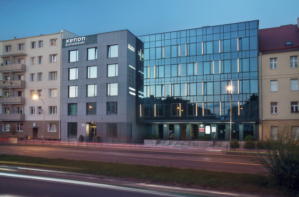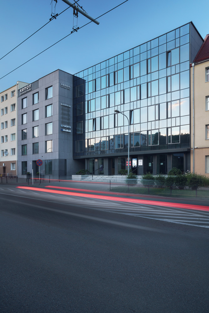 Połączone ze sobą trzy budynki XENON BUSINESS PARK o łącznej powierzchni ponad 3700 m2 tworzą wygodną i elegancką przestrzeń biurową. Na ponad 3 tys. m2 po¬wierzchni biurowo-usługowej znajdują się funkcjonalne lokale od 8m2 z możliwością łączenia.